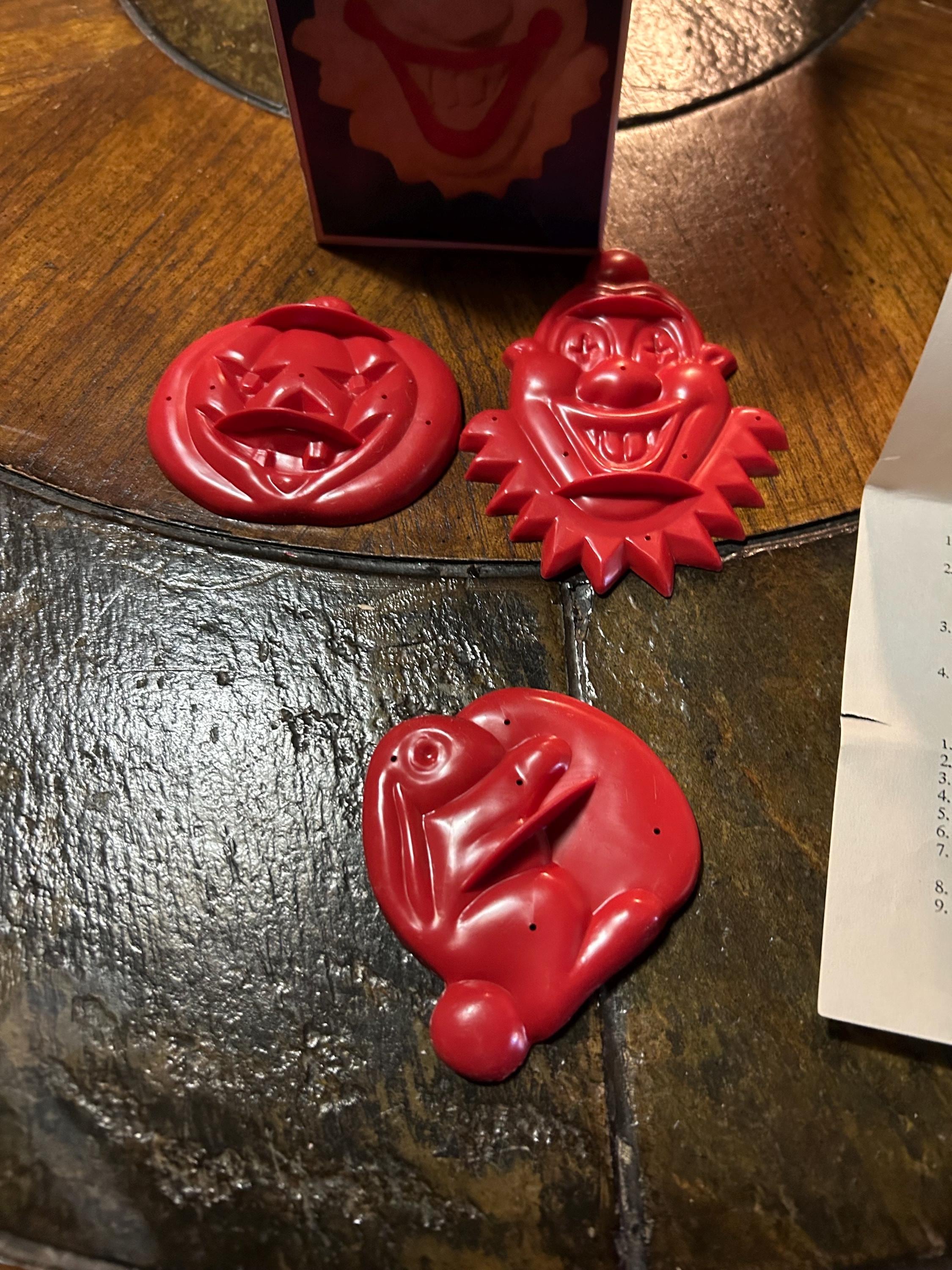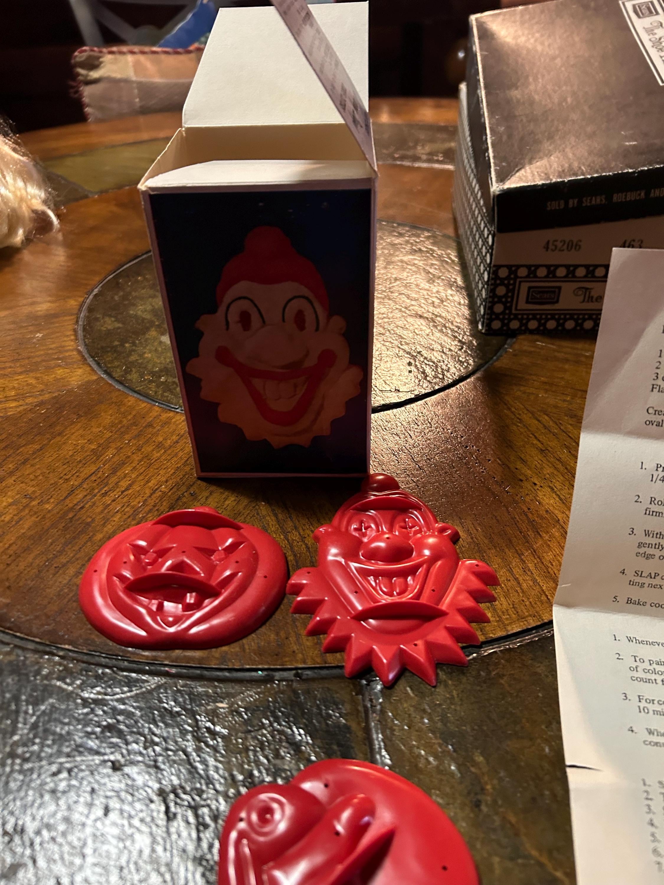 Vintage Aunt Chicks Happy Days cookie cutters- including Easter Bunny, Bobo the clown, Jack o lantern and original box.