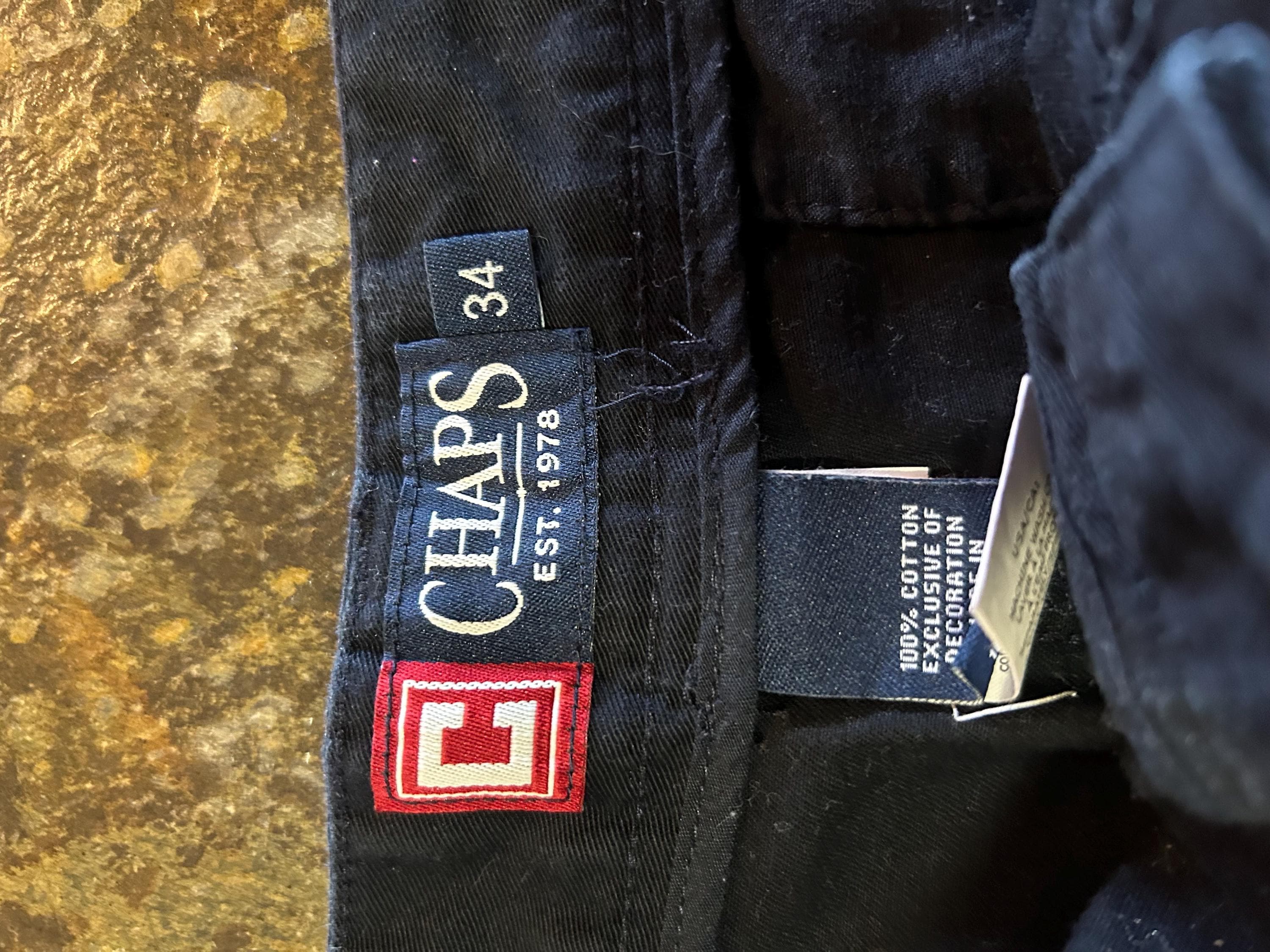Unisex Chaps shorts navy Blue with Lobsters size 34. Two side pockets, 2 back pockets, 19"L.